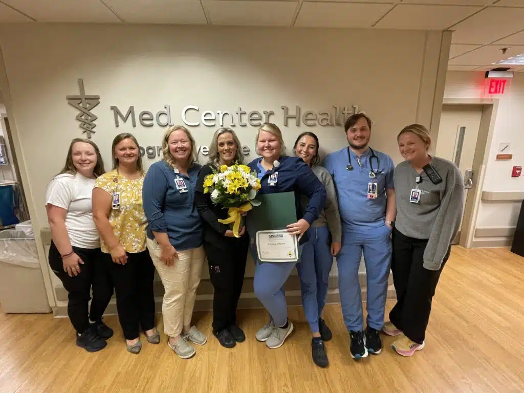 “Candice is constantly recognized by her patients in every round I do. Her patients describe her as ‘kind, caring, and compassionate’ and one said ‘She’s such a ray of sunshine. She makes being stuck in the hospital so much better. I don’t feel like a burden when she’s taking care of me.’ Candice hasn’t been with Med Center Health long, but she is already a preceptor and has gotten several compliments. I’ve seen nurses relax when she’s the CNA that day because they know their patients are taken care of.” – Ashton Smith and a former patient