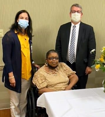 Diana Wilson (center), The Medical Center at Bowling Green Patient Registration, retired after seven years of service. Congratulating her are Michele Lawless, Executive Vice President & Chief Financial Officer, and David Gray, Executive Vice President.