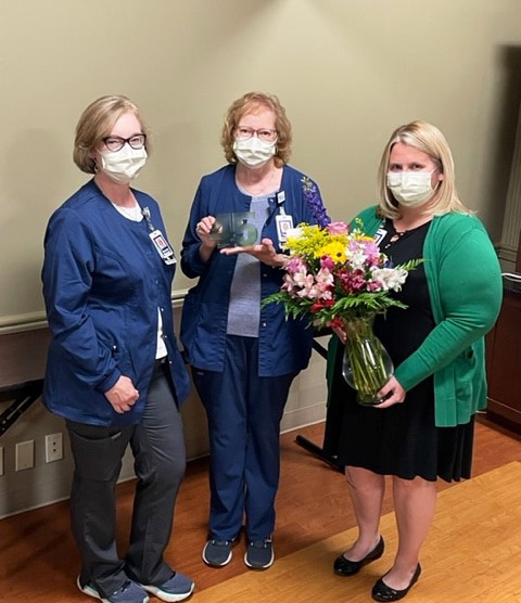 Sheila Frank, The Medical Center at Bowling Green Wound Care (center), retired after more than 45 years of service. Congratulating her are Marquita Miller, Program Manager (left), and Ashley Hittson, Director of Professional Development and Quality (right).