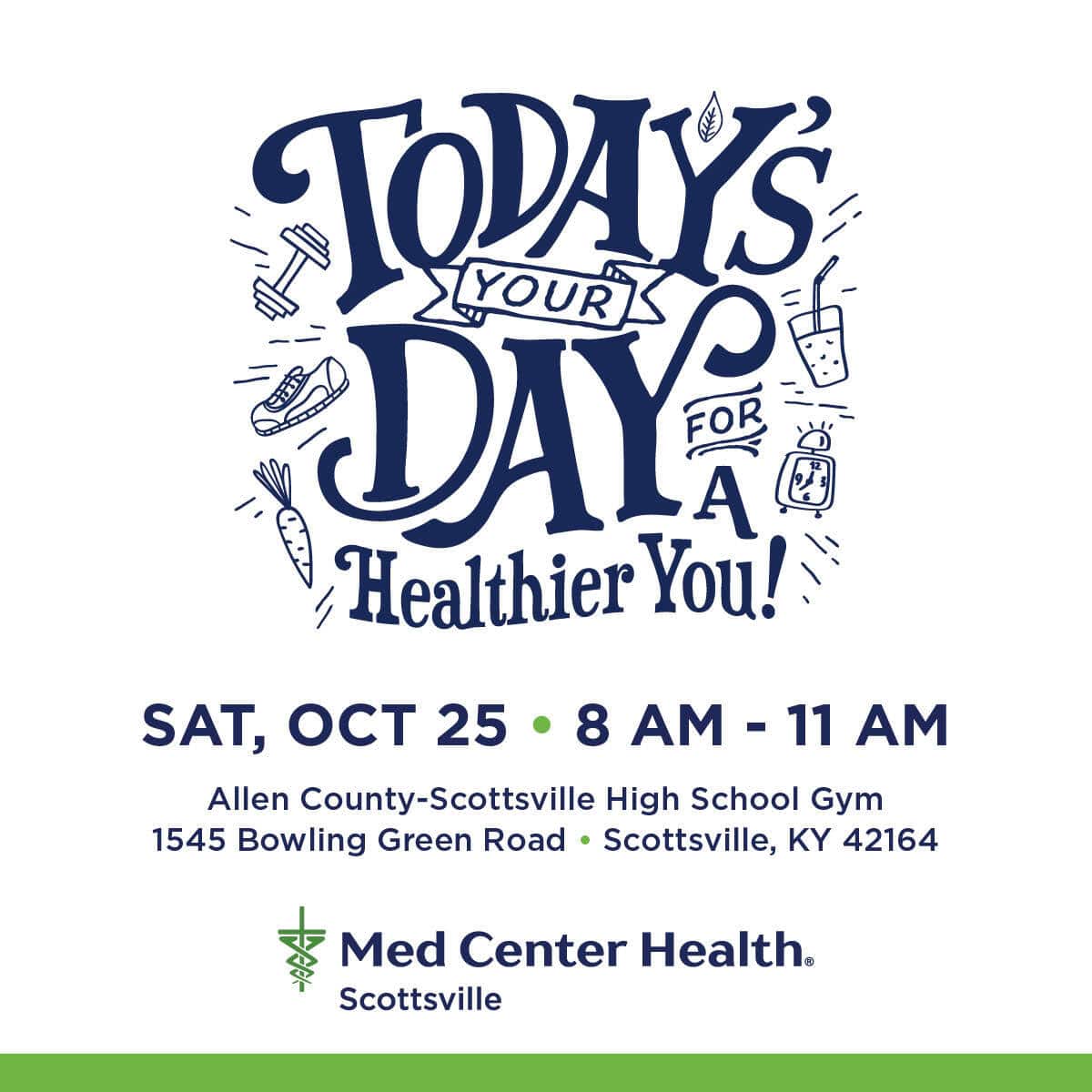 The Medical Center at Scottsville Community Health Fair is quickly approaching! On Saturday, October 25, everyone is welcome to come to our community health fair. The health fair will be located at the Allen County-Scottsville High School gym and will run from 8:00 a.m. – 11:00 a.m. The event is completely free, and a great way to check-in on your health.